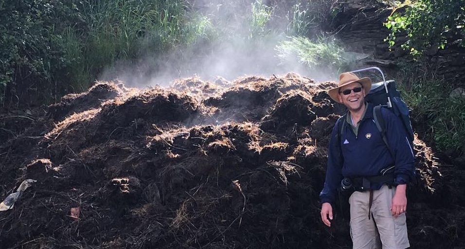 Yes, what you are looking at is the largest steaming pile of manure you’ve ever seen. When you encounter something as funny and unusual as this, you take a photo immediately and worry about how to explain it later. It is just one of the many incredible, unusual and humorous sights, sounds and smells I recently encountered when I traveled to Spain with my three sons and small group of other men to walk part of the Camino de Santiago de Compestela. In English, people call this “The Way of St. James.” This pilgrimage challenged us physically, mentally, emotionally and spiritually. We averaged 18 miles per day with 20 lbs. packs on our backs. We went up and down mountains and through intensive heat. It was hard. Very hard. But it was worth it.