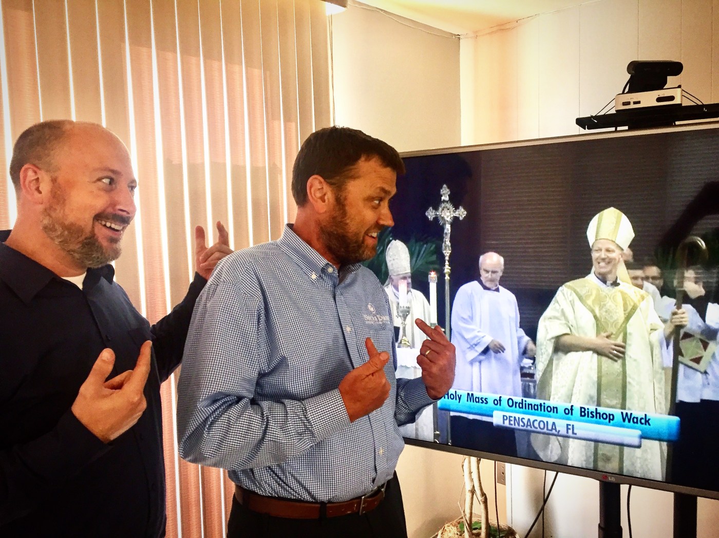 An old friend gets ordained a bishop. We watch the livestream from 872 miles away. At the end, while he’s leaving the church, he shows off an amazing new power of seeing us through a tv screen. Whoah!