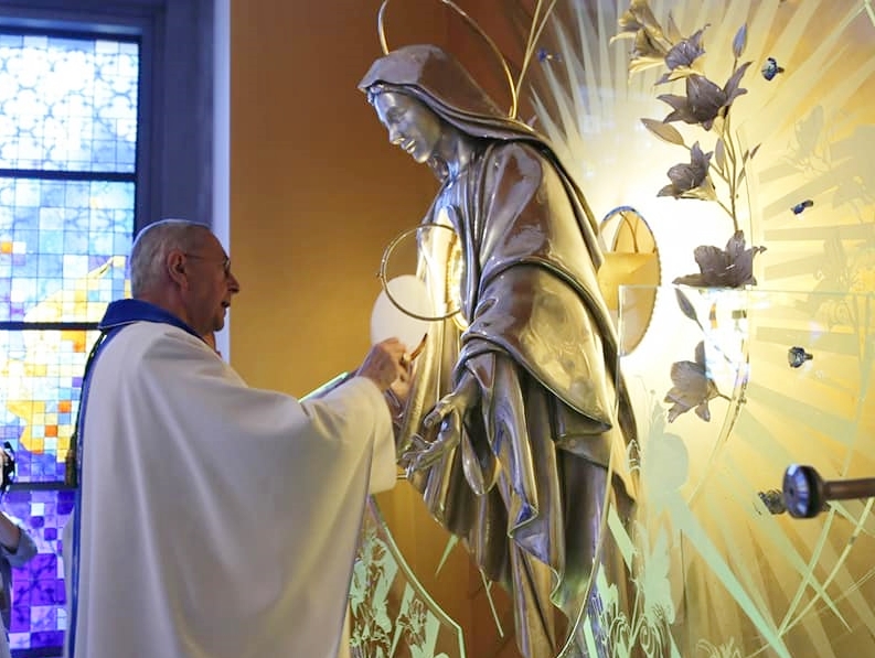 Late at night, I’ve taken to praying quietly in Poland. No, of course I don’t go there in person, I livestream Eucharistic Adoration from this beautiful chapel constructed by St. Maximillian Kolbe’s religious community. It’s actually a beautiful way to end my day: on my knees in the darkness for a few moments, connecting to the Real Presence of Christ from across the ocean. Try it!
