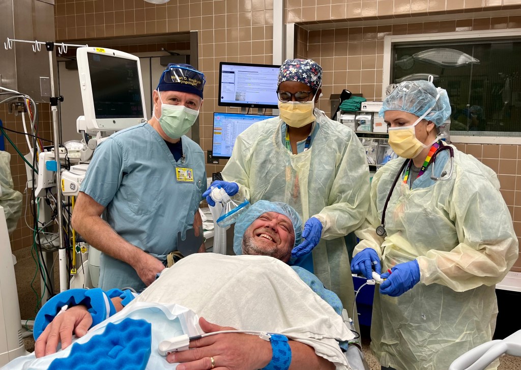 Yesterday’s surgery began as a bloody mess on my arm, my gown and my bedsheets. It took them 7 attempts to insert a simple IV into my beleaguered veins. I’m on blood thinners so it was hard to get all the poke points to stop bleeding. The final two attempts were guided by an ultrasound-vein finder that costs more than the operator’s condo. These are highly skilled and conscientious people. It wasn’t their fault. After a lifetime of this stuff, I just have some worn out veins. Once I arrived in the operating room, the rest of the team was ready to go. Surgery by the renowned and beloved University of Michigan otolaryngologist, Dr. Norman Hogikyan, was successful. Although I have a very sore throat, today I am finding it MUCH easier to speak.
